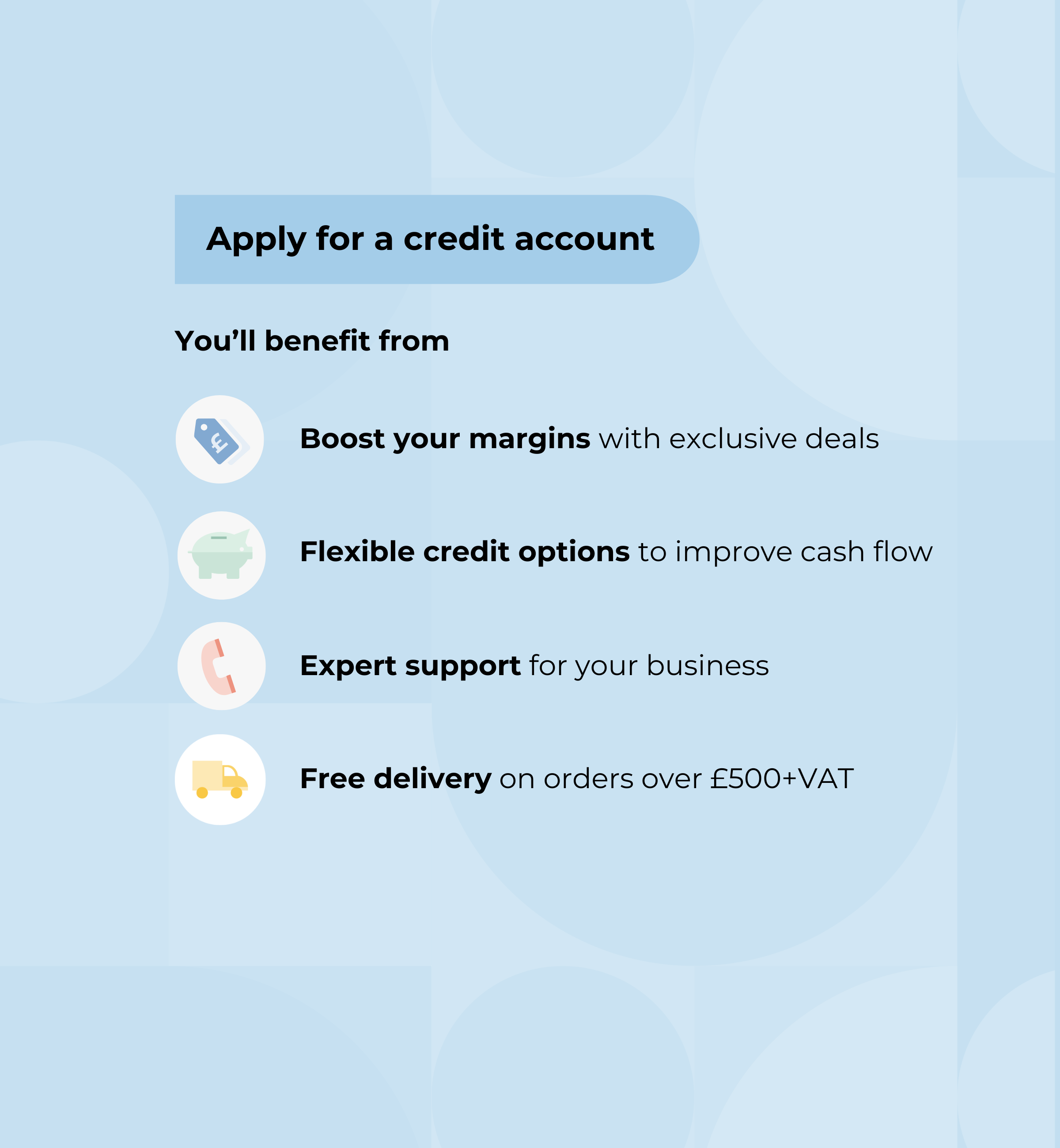 Account Verification: When applying for an account with us we conduct checks against the company including directors and owners. These checks are made to ensure we can make an accurate decision regarding the validity of your account and to protect against fraud and money laundering. We may decide to decline your application this may be for the following reasons (this list is not exhaustive): poor credit ratings, poor payment history, previous outstanding debt, frequency of director changes, conflict of interest, and non-UK registered business. Your data is held internally and only processed in accordance with your account application. We do not pass this information on to any third parties outside our organisation. From time to time we may review company creditworthiness and make changes to account limits based on account payment history, current financial rating and frequency of account use.
