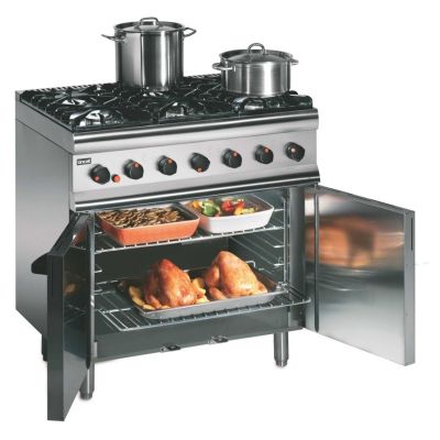 Cook a variety of delicious dishes with the powerful Silverlink 600 SLR9-N Gas Oven Range. The six gas burners not only offer power, but also come with a flame failure device for added safety. Then there's the high power gas oven with side opening doors for easy access. The oven range, perfect for cafe bars, care homes and small restaurants, also comes with a low level flue which maximises the working area and enables you to use large stock pots. The fully pressed and sealed hob tops make for easy cleaning, and there are four shelf positions with two removable shelves.