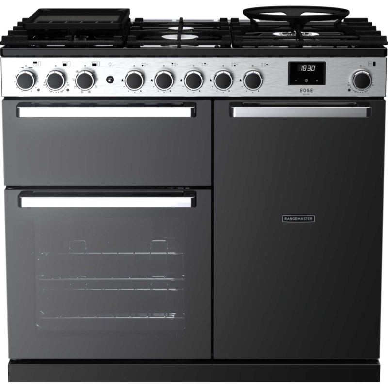 Rangemaster EDDL100DFGBLKCM Edge Deluxe 100 Dual Fuel Range Cooker - Black with Chrome Trim