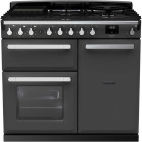 Rangemaster ESDL100DFPSLTCM1 Estel Deluxe 100 Dual Fuel Range Cooker - Slate with Chrome Trim