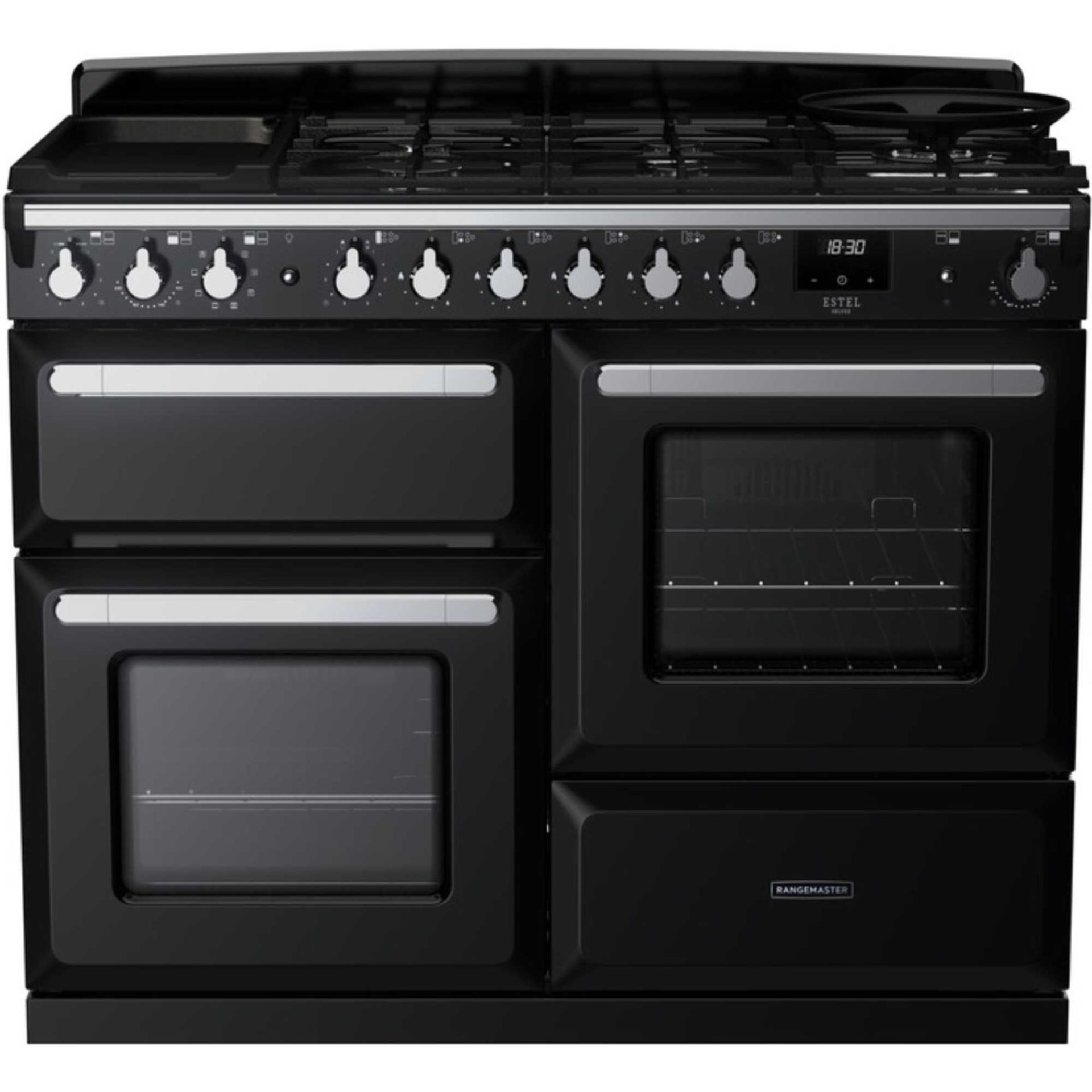 Rangemaster ESDLO110DFPGBLCM Estel Deluxe 110 Dual Fuel - Gloss Black with Chrome Trim