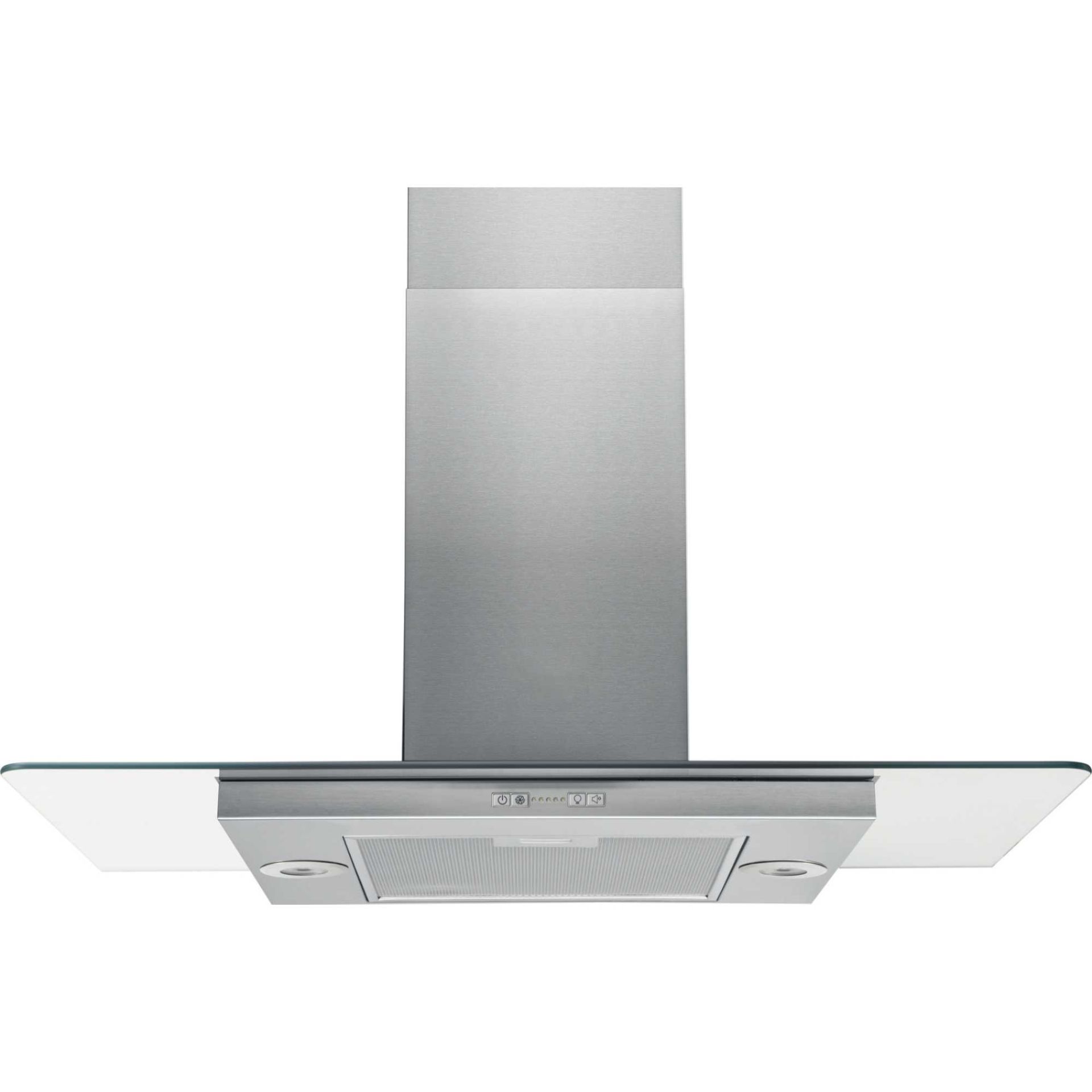 Introducing the Hotpoint UIF93FLBX 90cm Chimney Island Hood in sleek stainless steel a sophisticated and efficient solution to elevate your kitchen. Measuring H:690mm x W:898mm x D:451mm, this island hood seamlessly combines modern design with powerful functionality.