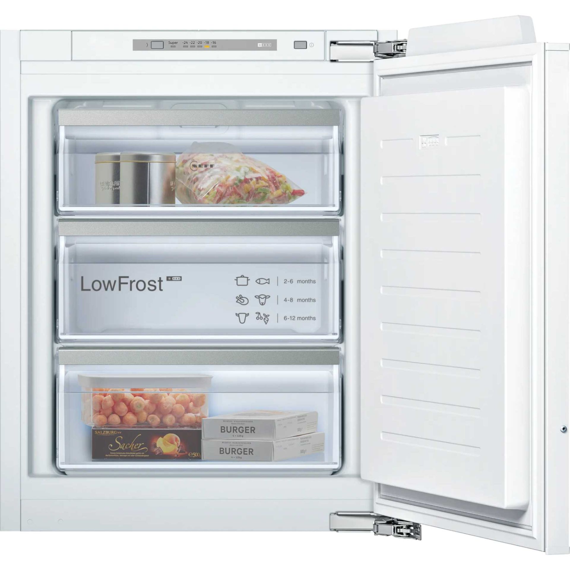 Experience efficient and versatile freezing with the NEFF GI1113FE0 N50 72L Built-In Freezer in White. Designed with Low Frost technology, this freezer significantly reduces ice build-up, making defrosting quick and easy. With a 72-litre capacity, it offers ample space for all your frozen essentials, neatly organised within three drawers.
