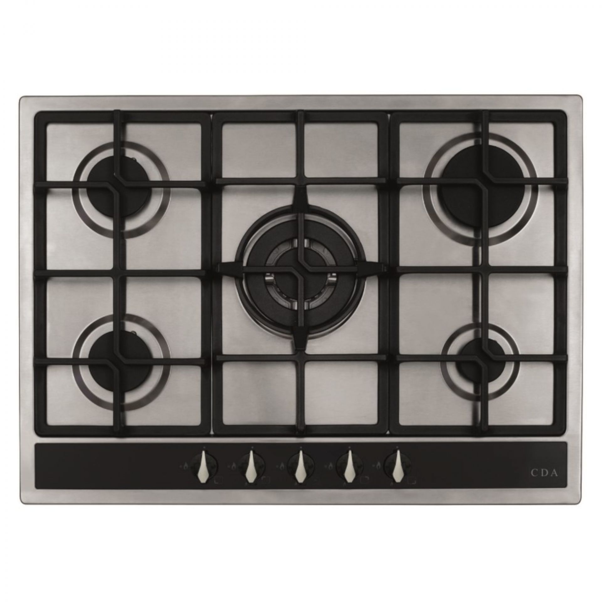 The CDA HG7351SS 700mm 5 Burner Gas Hob with Wok Burner features an eye-catching iron grid design to make sure it stands out in any kitchen.