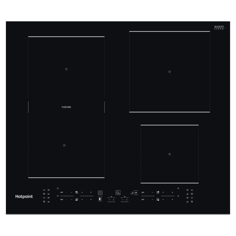 Fall in love with cooking all over again with this TB7960CBF induction hob from Hotpoint. Because it has 4 induction zones uses electromagnets targeted the base of your pots instead of heating the whole surface.