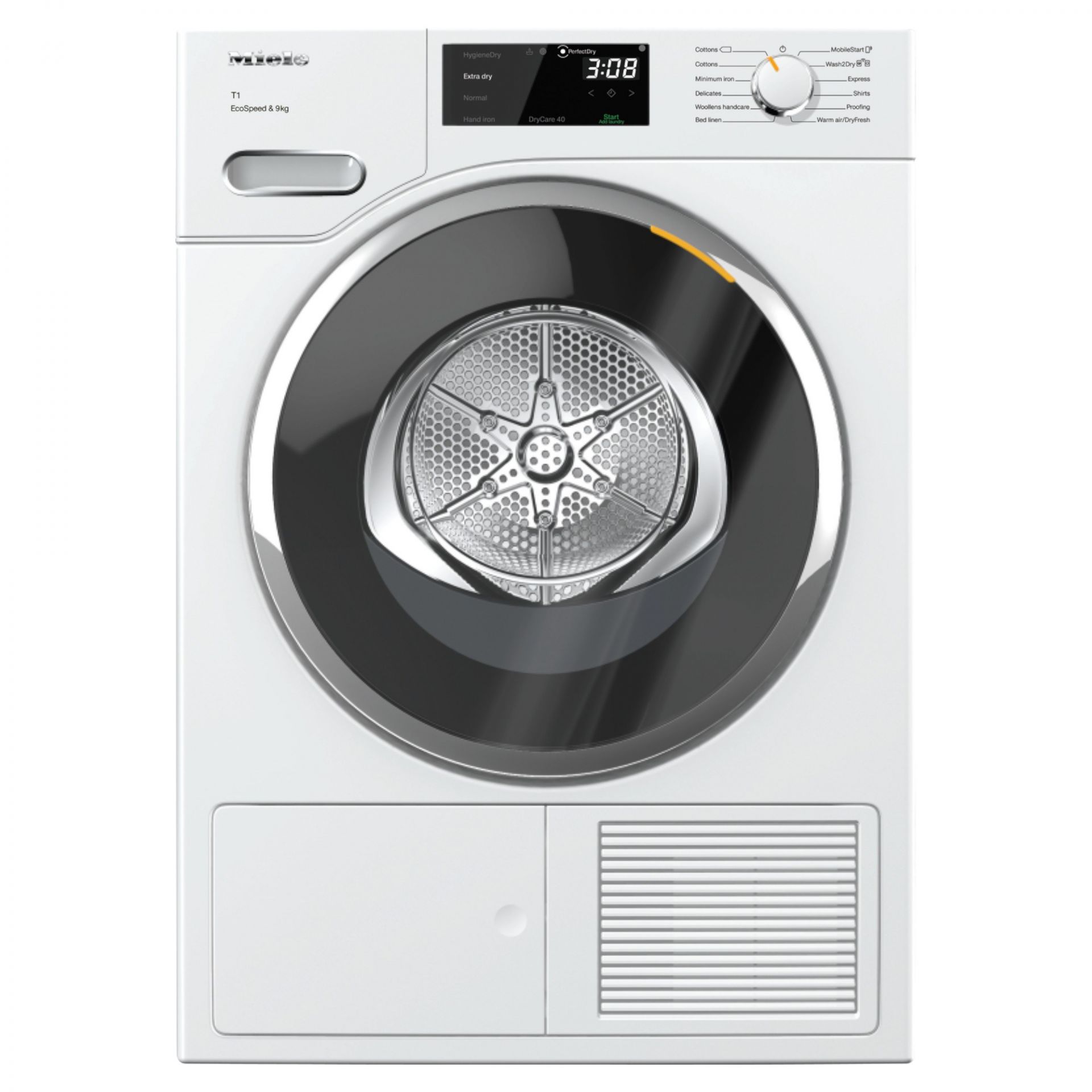 The Miele TWH780WP T1 9kg EcoSpeed Heat Pump Tumble Dryer will have all of your clothes dried and ready to wear in no time whilst also taking complete care of them during each cycle.