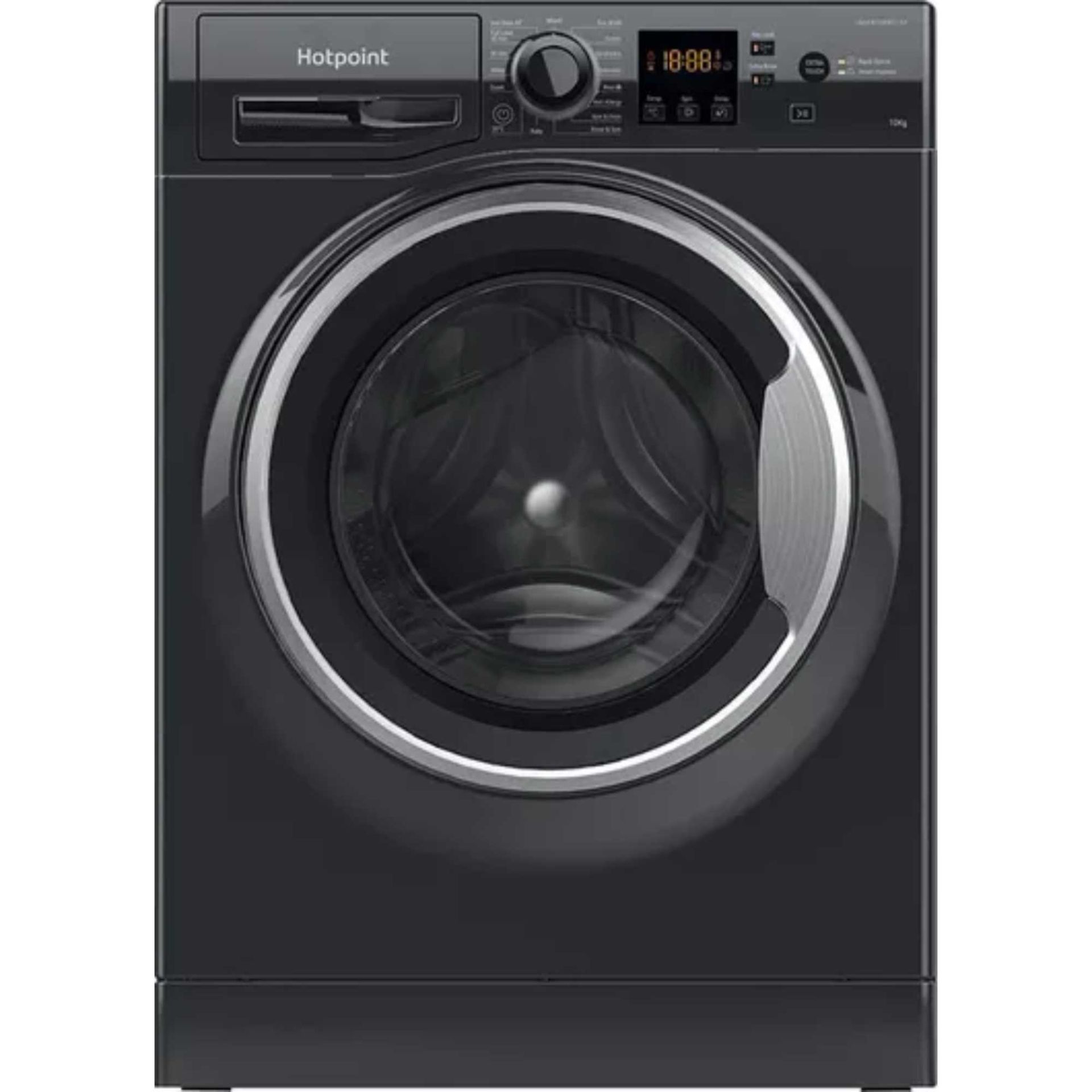 Introducing the Hotpoint NSWM1046BSUK 10kg 1400rpm Washing Machine in sleek Black, designed to revolutionise your laundry experience. With an impressive 10kg load capacity, this washing machine is perfect for tackling large loads of laundry, making it ideal for busy households and families.