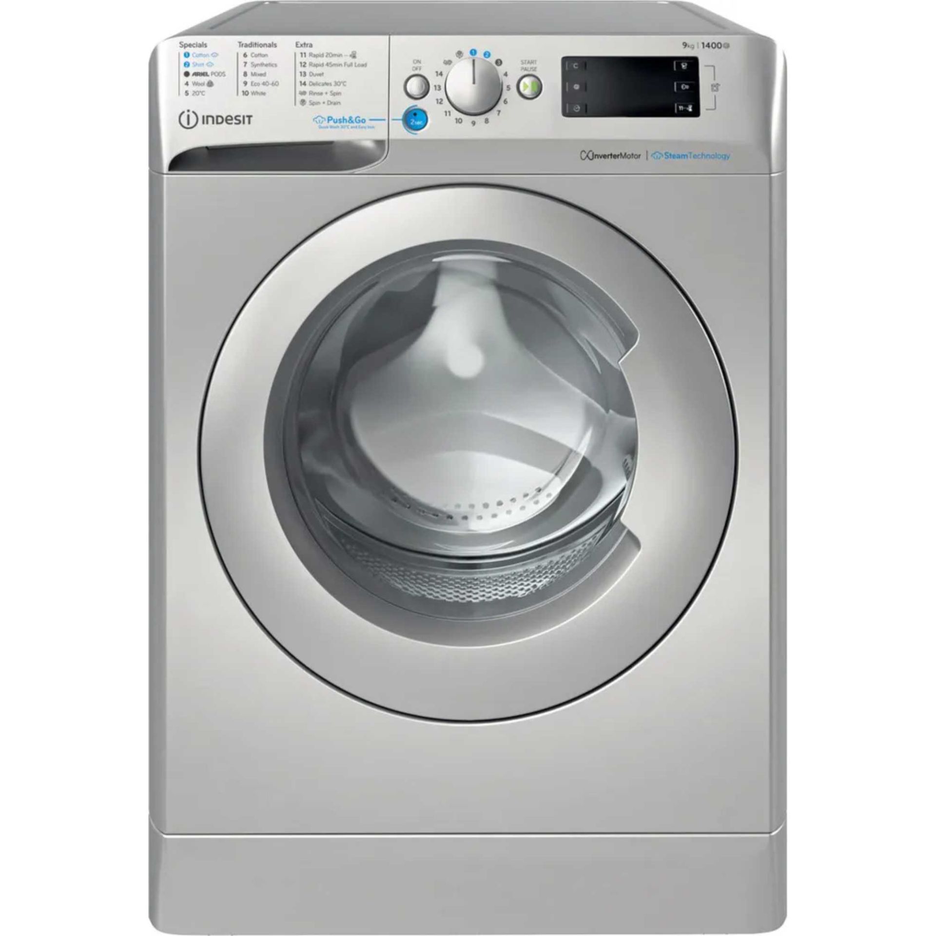 Indesit BWE 91496X SV UK Steam Push&Go 9kg 1400rpm Washing Machine - Silver