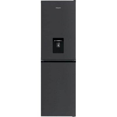 Introducing the Hotpoint HPKH 1261W XBR4UK 50/50 No Frost Fridge Freezer with Water Dispenser in a sleek Dark Silver finish. This cutting-edge appliance combines style and functionality to enhance your kitchen space. With a generous capacity split evenly between the fridge and freezer compartments, you'll have ample room to store all your fresh and frozen essentials.