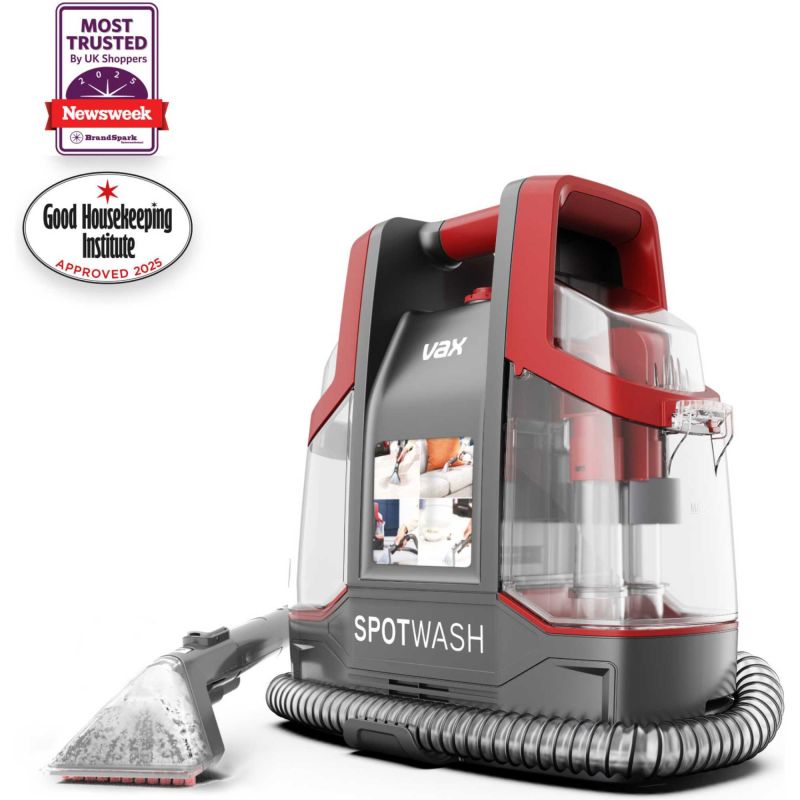 Introducing the Vax SpotWash CDCW-CSXS Portable Spot Cleaner in a sleek Graphite & Red colour combination. This innovative appliance offers an effective solution for tackling stubborn stains and spills on various surfaces. Equipped with multi-surface cleaning capabilities, the Vax SpotWash effortlessly removes dirt from carpets, upholstery, and more, ensuring a thorough and deep clean every time.