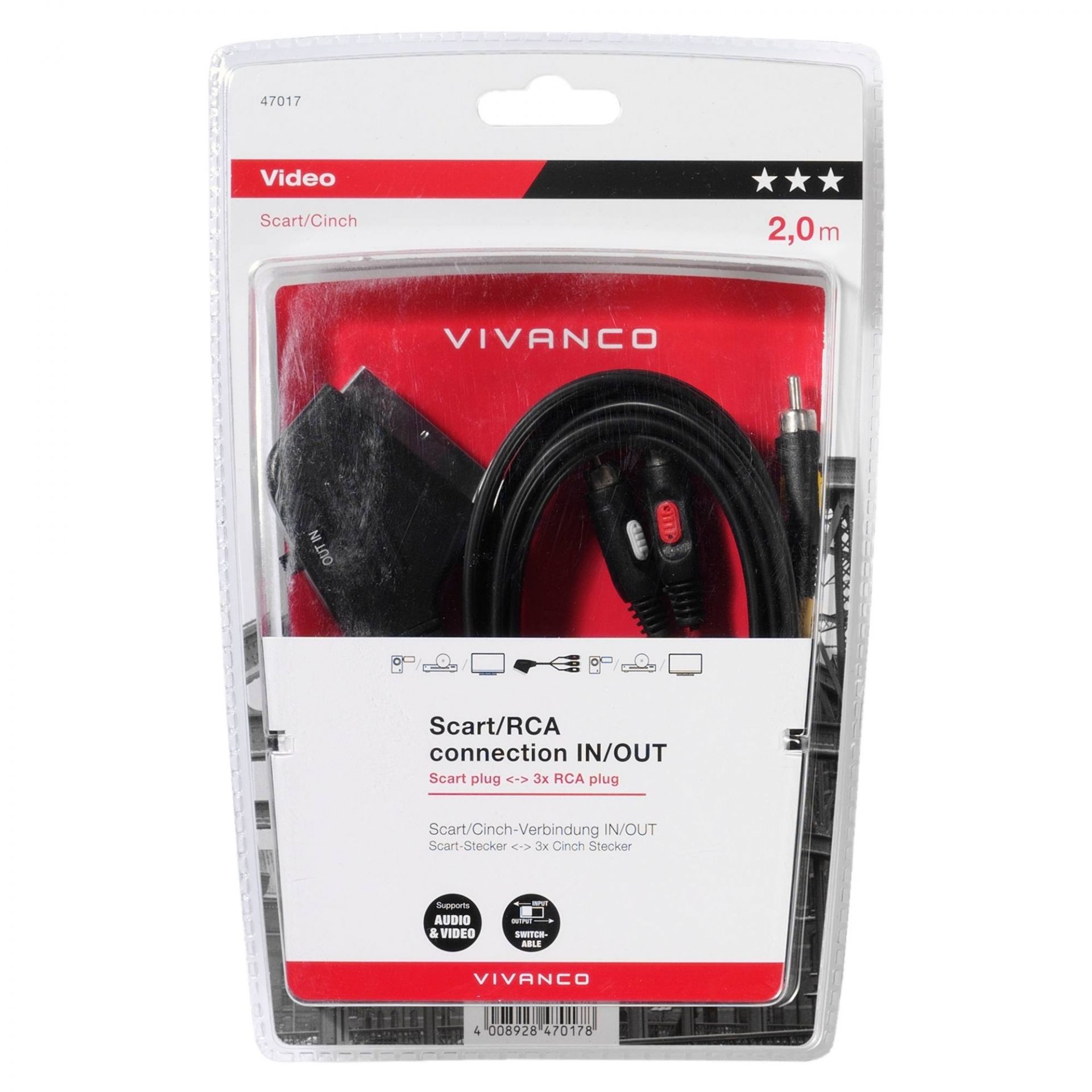 Experience seamless connectivity with the Vivanco 47017 Scart Connection Lead 2M. This versatile cable is designed for effortless connections between different AV devices, boasting a Scart plug on one end and three RCA plugs on the other. Whether you're linking a VCR to a TV or setting up a multimedia system, this cable has you covered.