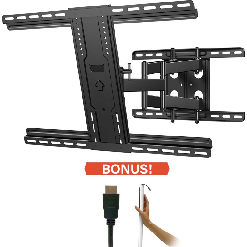 The in-arm cable management system, which includes a 9.8' 4k HDMI cable and 2 cable tunnels, keeps unsightly cables neatly tucked away, maintaining a clean and organised appearance. This thoughtful feature not only enhances the aesthetic appeal of your mounted TV but also helps prevent cable clutter, keeping your entertainment area neat and tidy. With the Sanus FLF322KIT Full Motion TV Wall Mount, you can enjoy a cinema-like viewing experience right in your home, with the added convenience of a clutter-free setup and personalised viewing angles.