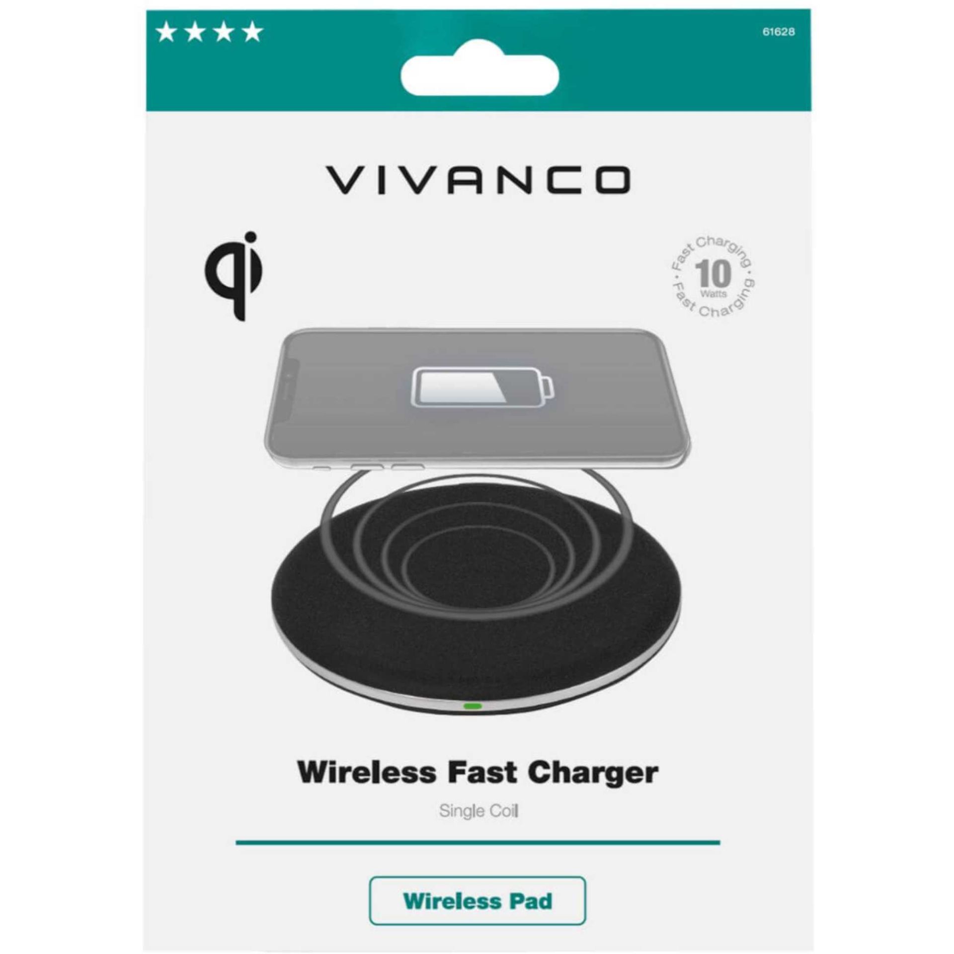 Vivanco 61628 10W Wireless QI Certified Fast Charging Pad with LED Light