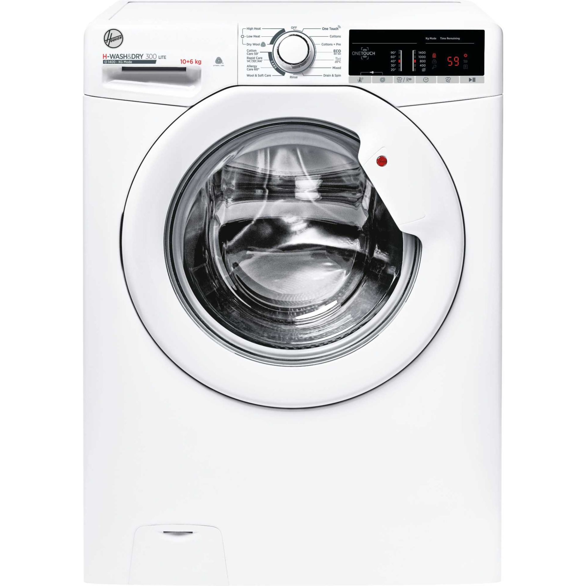 The Hoover H3D 4106TE/1-80 boasts advanced features to enhance your laundry routine. The innovative KG Mode technology automatically weighs your laundry at the start of each cycle, then adjusts water, energy consumption and cycle time accordingly. This ensures optimum results, while reducing waste and operating costs. With 15+1 versatile programmes and 9 dedicated care cycles, you can confidently wash and dry all types of fabrics, from delicate garments to cottons and synthetics.