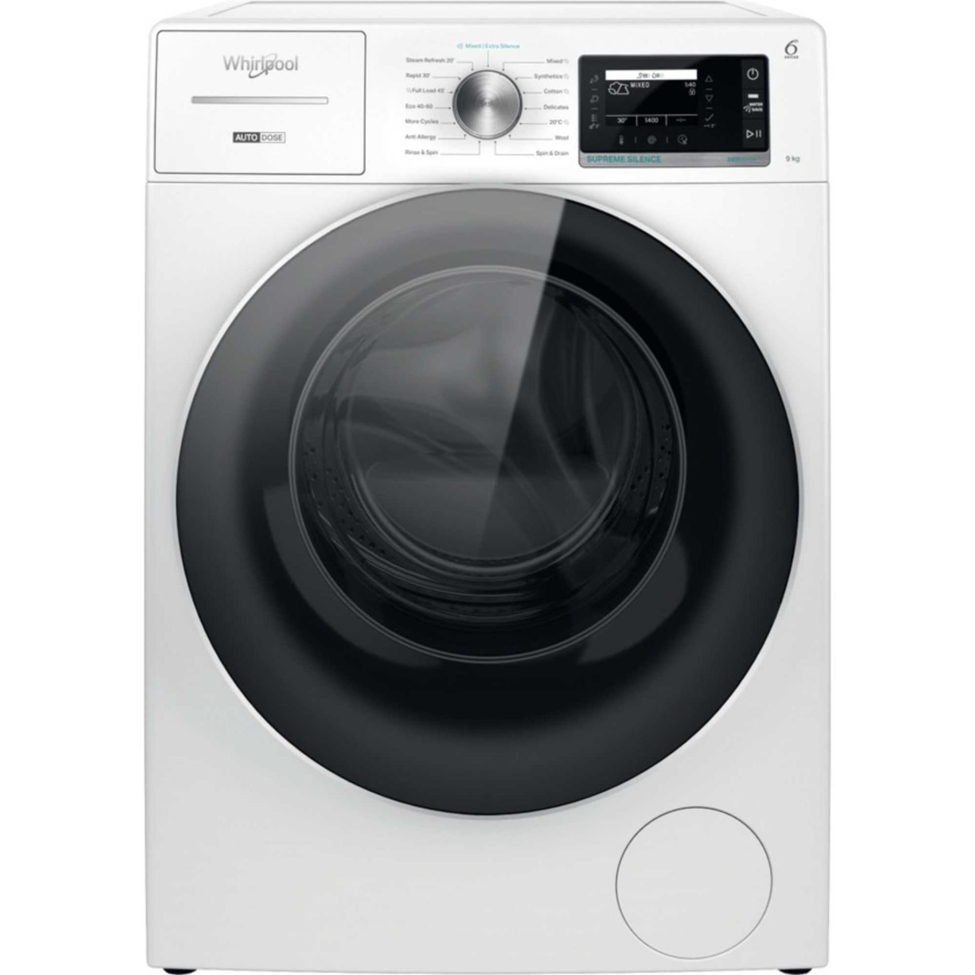 Upgrade your laundry routine with the Whirlpool W899ADSILENCEUK 9kg 1400rpm Washing Machine in White, featuring FreshCare+, AutoDose, and ZENTechnology for a superior cleaning performance and unmatched convenience.