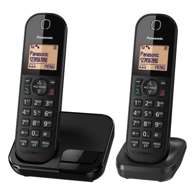 Upgrade your home communication system with the Panasonic KXTGC412EB Twin Handsets Cordless Phone in sleek black. This cordless phone set is designed to keep you connected effortlessly while adding a touch of style to your home or office.